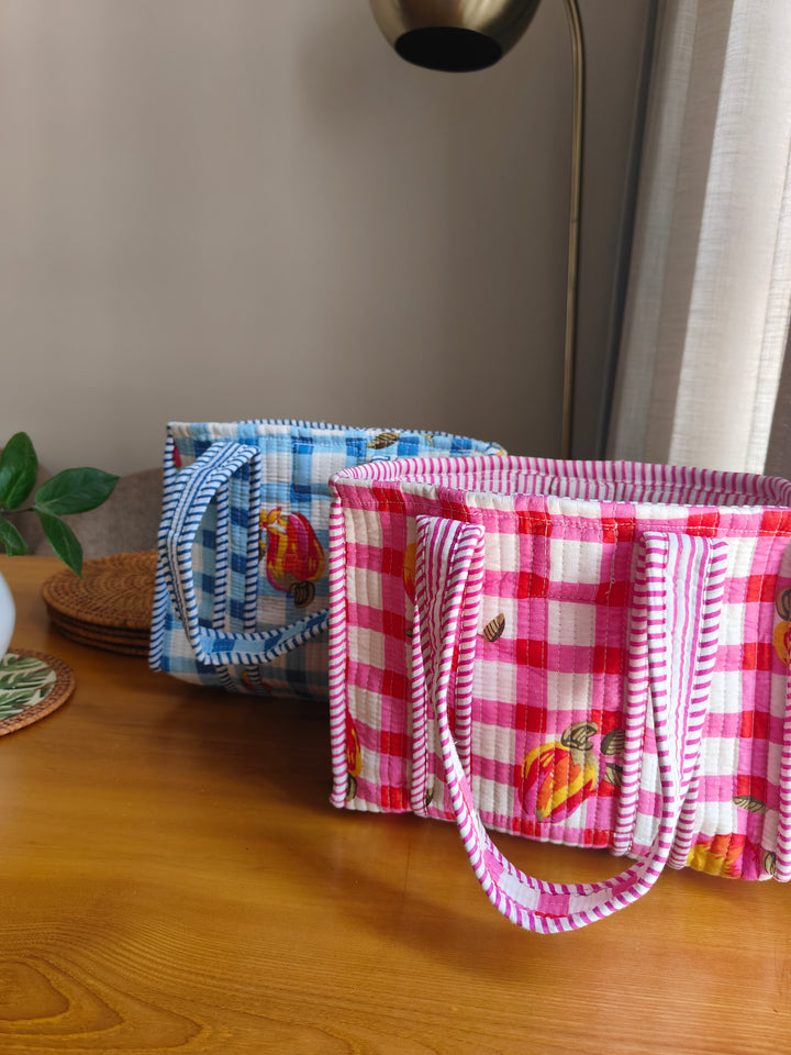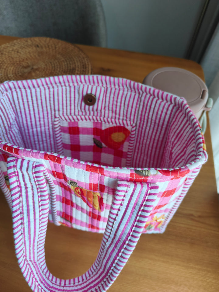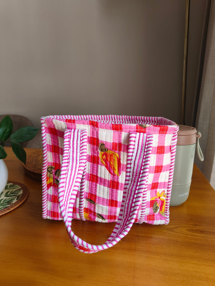 Pink Checkered Mini Tote (With Magnetic Closure)