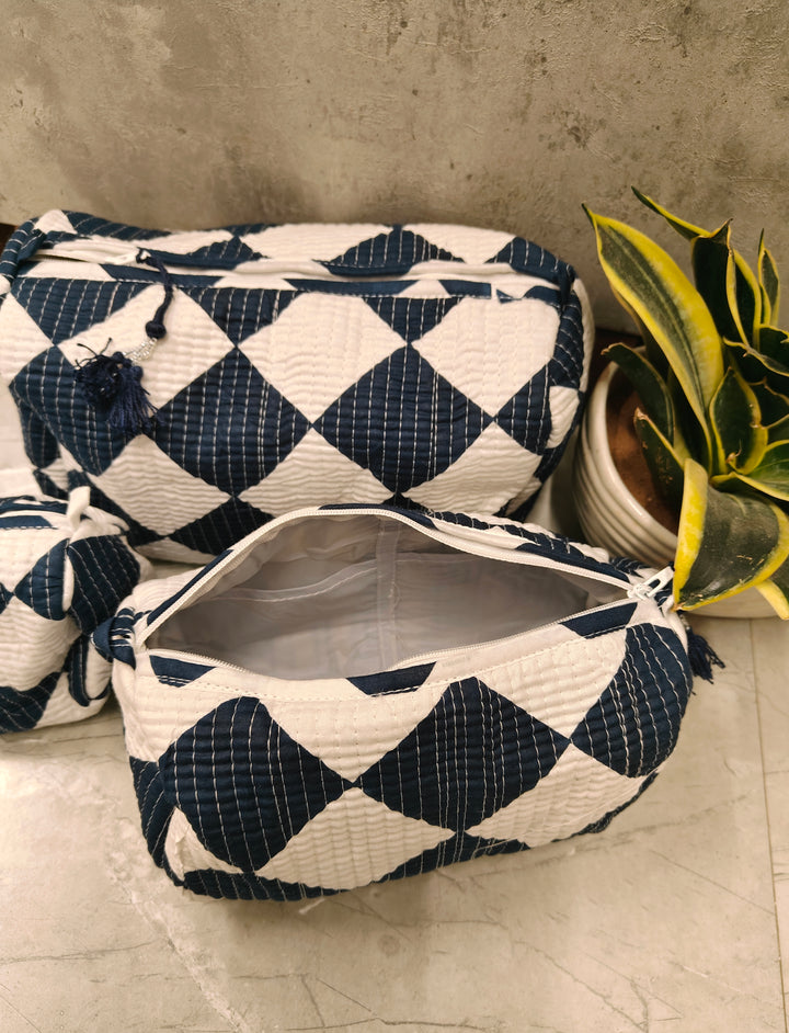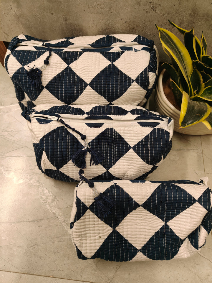 Our cotton fabric cosmetic pouches make for fun travel packs!