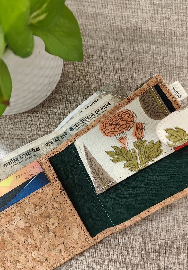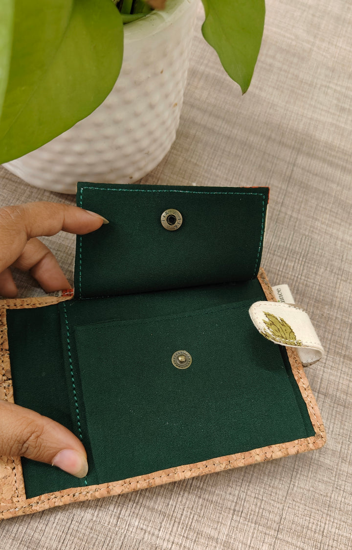 Crafted from rescued wasted fabric, this eco-friendly wallet reduces waste and minimizes environmental impact. The cork fabric interior adds a touch of natural elegance, while the sleek design ensures a modern look.