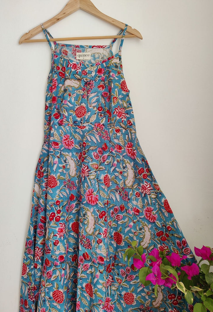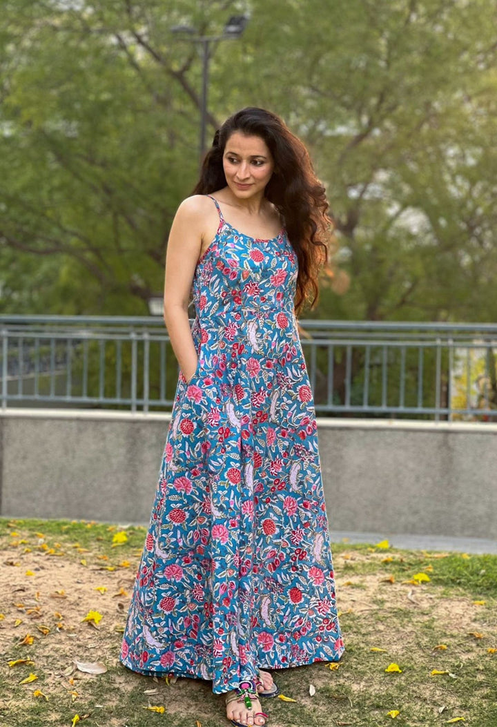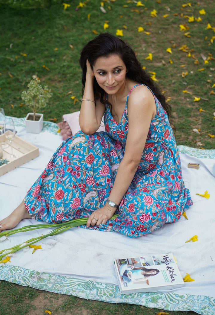 Inspired from the dandelion flowers, this dress is sure to help you flow with the wind and shine bright in the summers. Dandelion maxi dress comes with thin straps and a flowy design, made with pure cotton mulmul, making it the quintessential summer dress. Perfect for summer travels, coffees and meet ups.