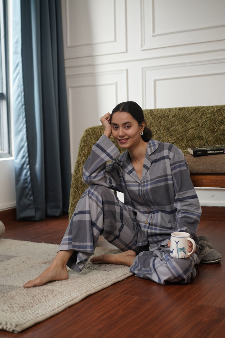 The perfect time to snuggle up in your favorite lounge set and sip hot cocoa has arrived! Get cozy this winter with our timeless flannel-checked lounge sets, with a warm and soft top and matching bottoms which are guaranteed to keep you warm and snug.