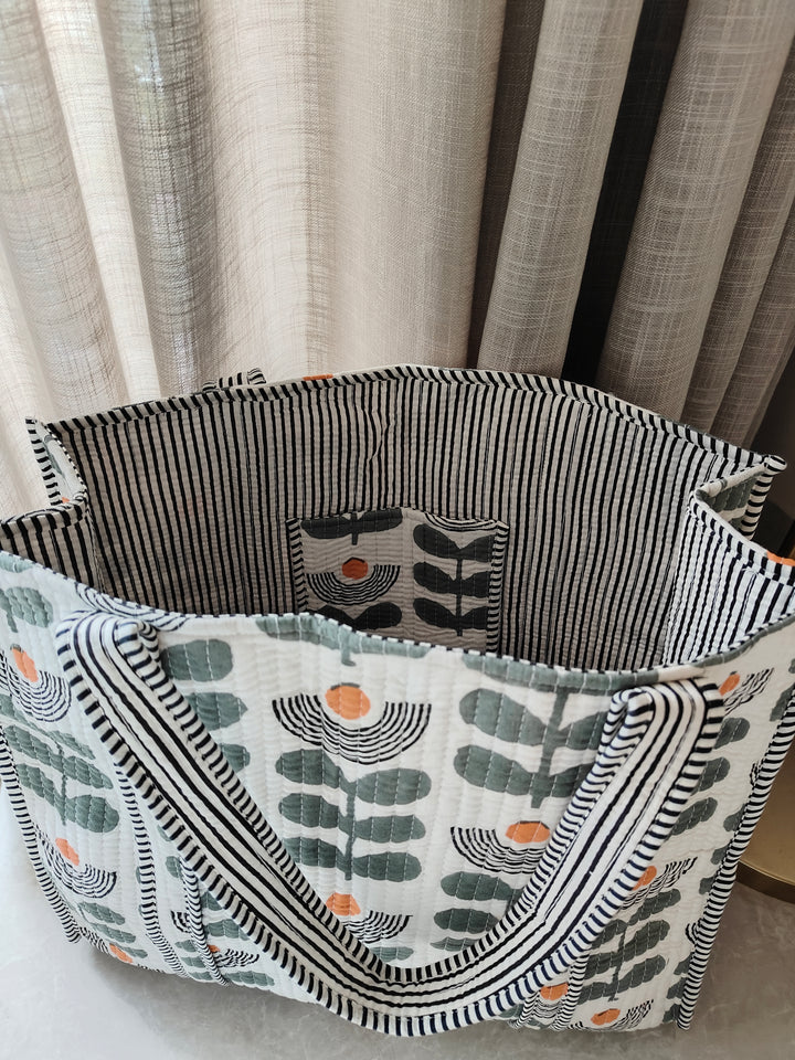 Carry your world wherever you go, no matter what the occasion, with our cotton Quilted Tote Bags. It fits both your laptop for the office and a towel and swimsuit for the beach. Perfect for traveling, shopping, school, work and everyday use.