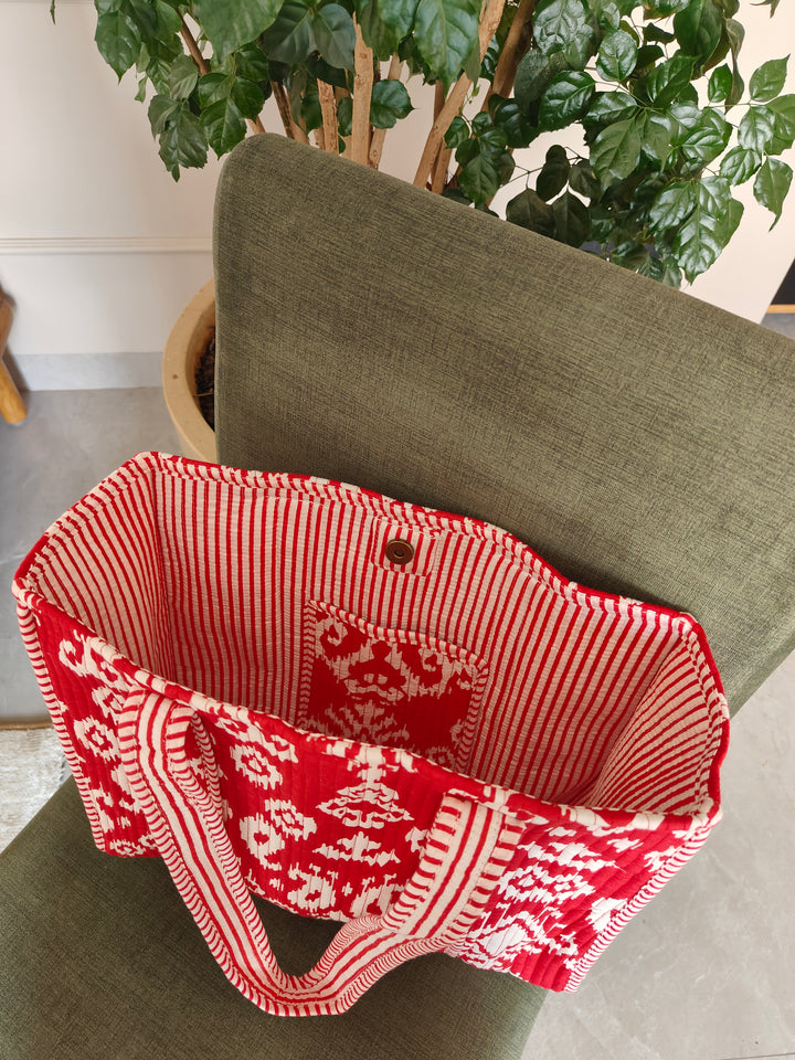 Indie Festive Red Tote (Small with Magnetic Closure)