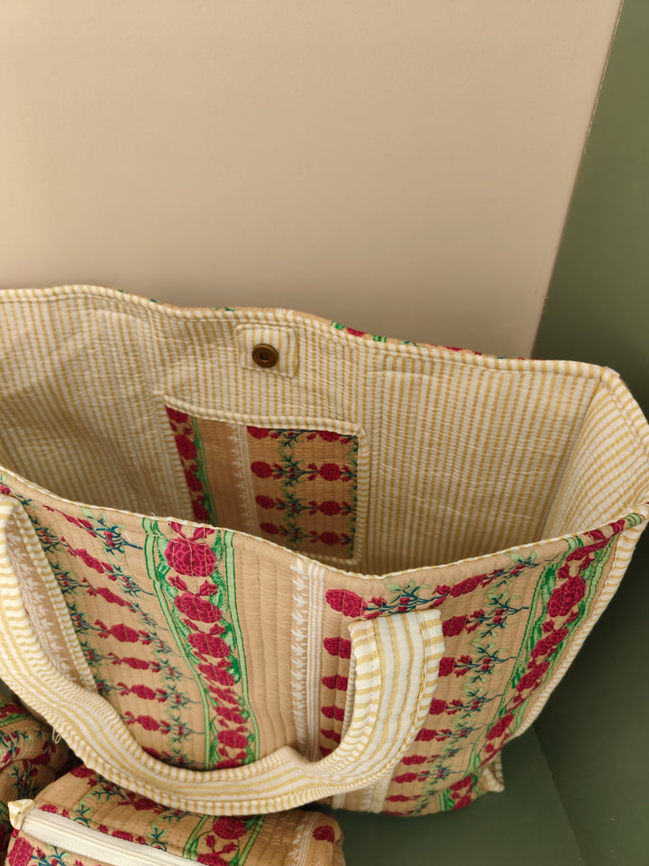 Carry your world wherever you go, no matter what the occasion, with our cotton Quilted Tote Bags. It fits both your laptop for the office and a towel and swimsuit for the beach. Perfect for traveling, shopping, school, work and everyday use.