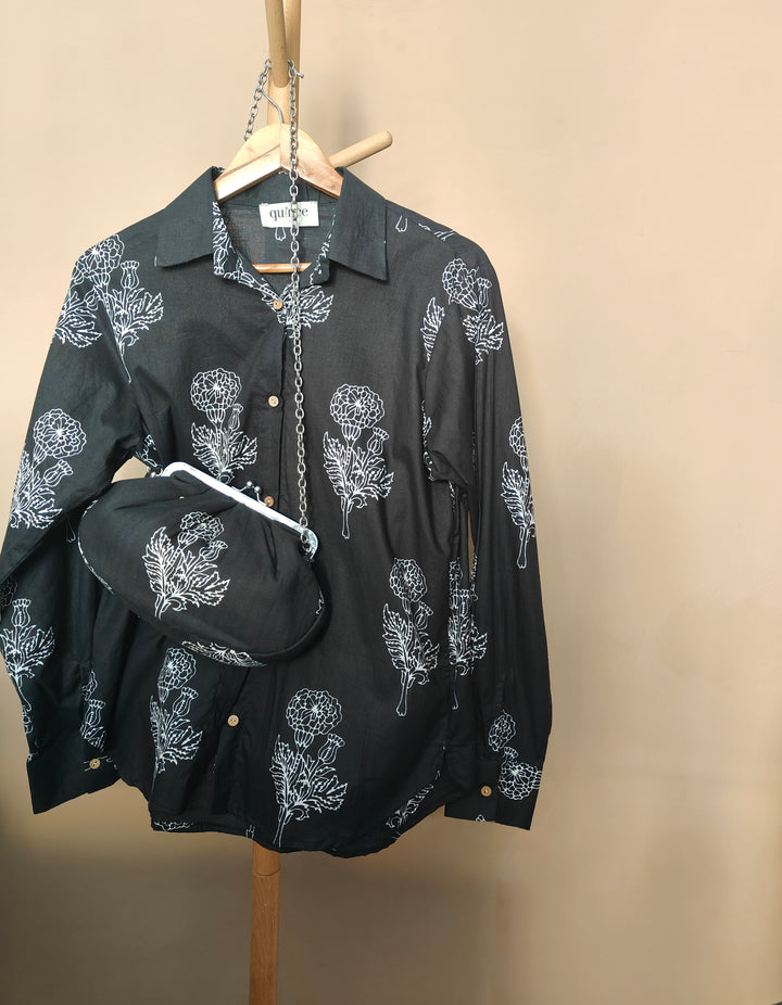 Why choose just one when you can grab both pieces of your beloved black rose noir duo and save? Introducing the classic and timeless shirt paired with a chic clutch. Perfect as a gift that’s always sure to delight!