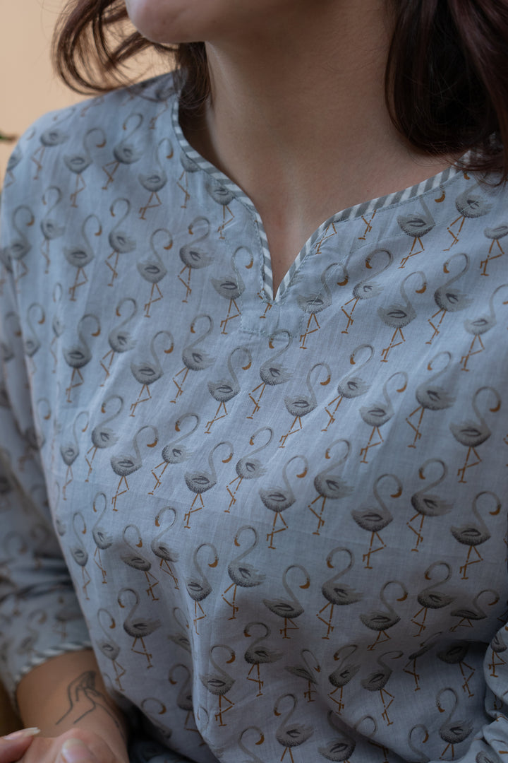 Flamingos are basically like us. They even sleep while standing, like the way we are on our toes all day long. Sleeping time deserves some extra comfort. So here we are with the softest block print fabric with these cute flamingo print, just for you!