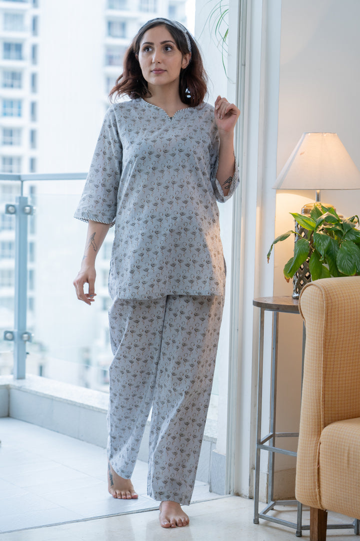 Our new pajama sets are made in luxurious cotton fabrics, enveloped with charming hand block-printed and screen print pattern . Top and bottom are both cut generously for easy comfort. Pants have a soft elastic and drawstring at waist. Fabric gets softer with every wash. Wear for a goodnight sleep, or all day at home for lounging. Comes with a blackout eye mask to help you sleep even better.