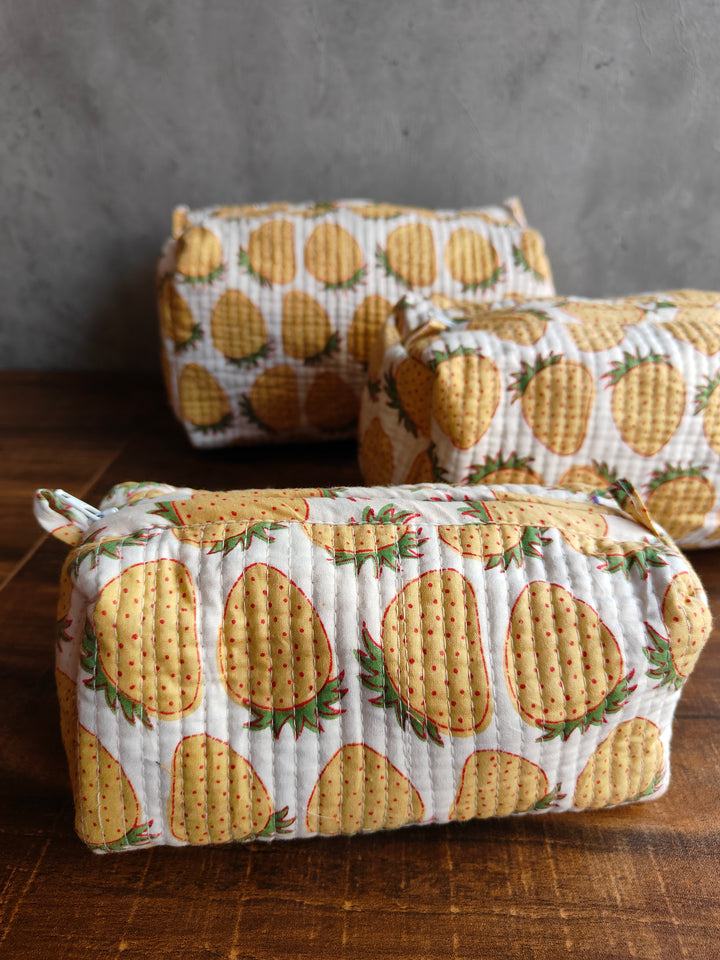 Our cotton fabric cosmetic pouches make for fun travel packs!