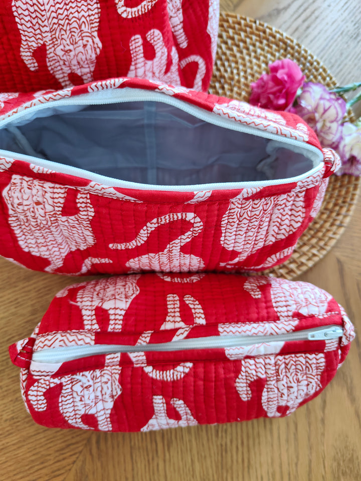 Our cotton fabric cosmetic pouches make for fun travel packs!