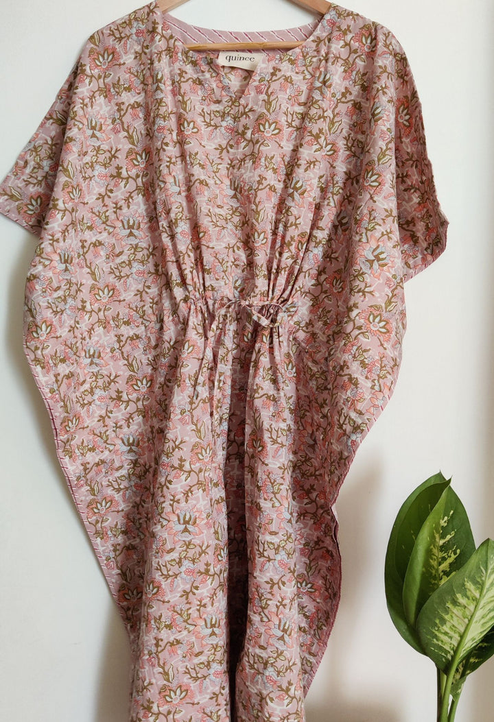 Paint your wardrobes with tropical vibes this summer. In delicate hues, floral themes & the comfiest of cotton this Kaftan is perfect for you.