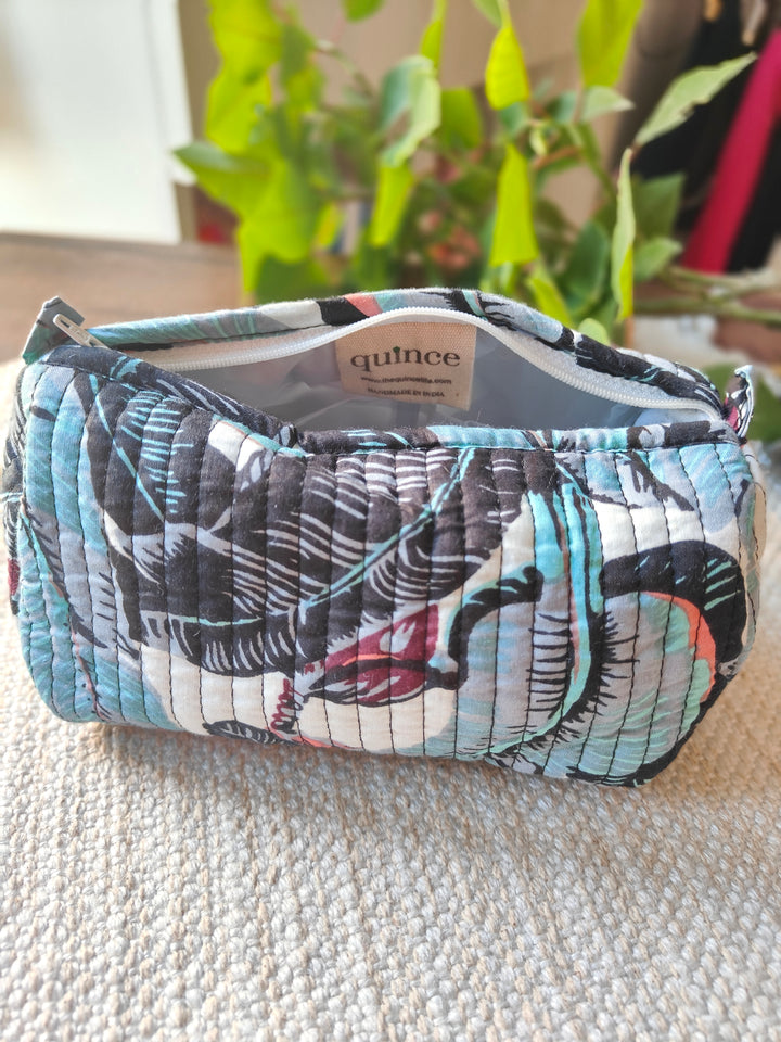 Our cotton fabric cosmetic pouches make for fun travel packs!