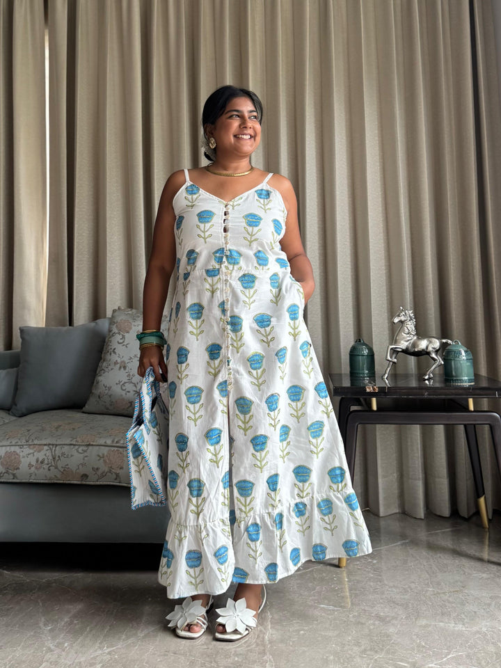 Tulip Kiss Dress with Matching Mini Handblock Tote -(Combo of 2)