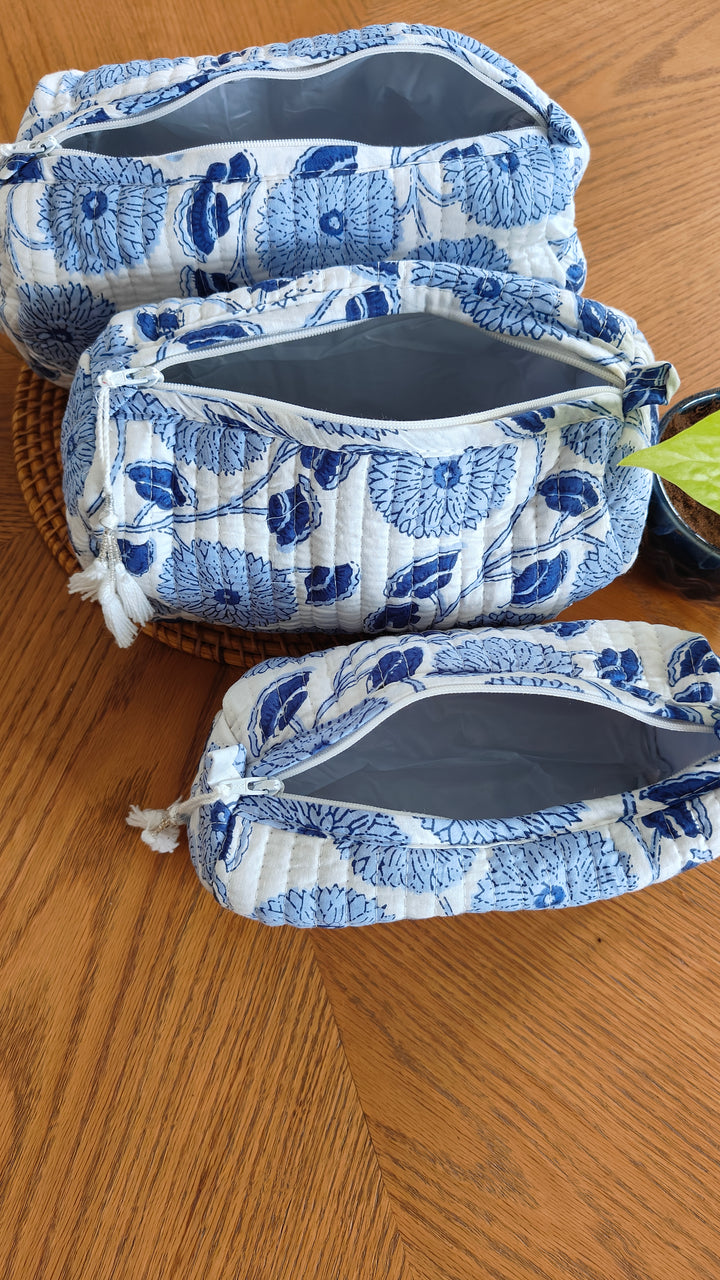 Our cotton fabric cosmetic pouches make for fun travel packs!