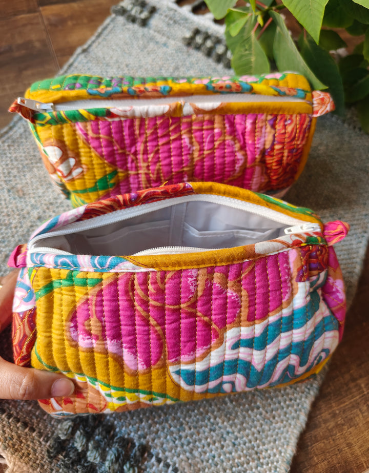 Our cotton fabric cosmetic pouches make for fun travel packs!