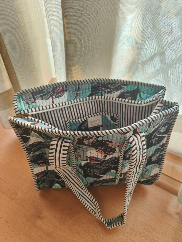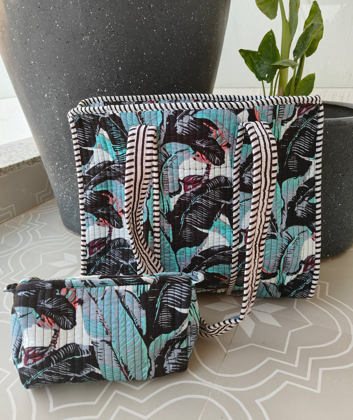 Tropical Night Black Tote with Single Pouch