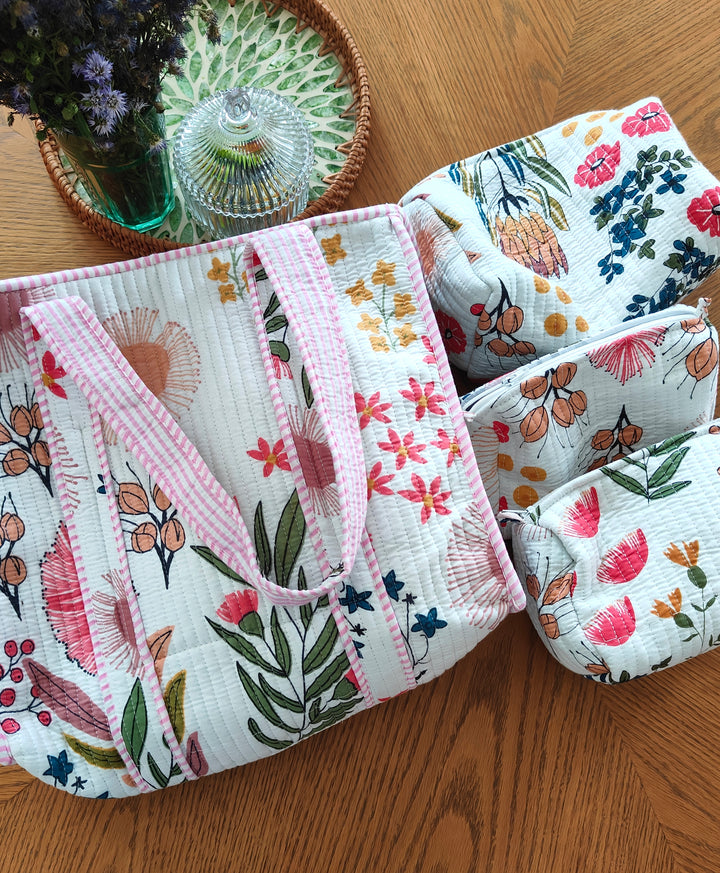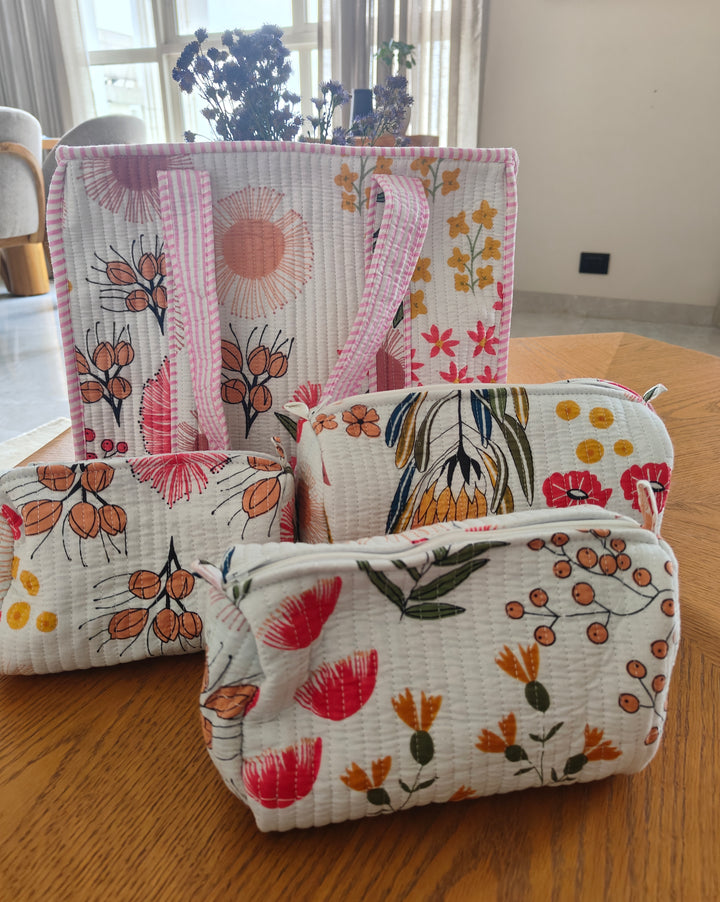 White Morning Meadow with Matching Set of 3 Toiletry Pouches